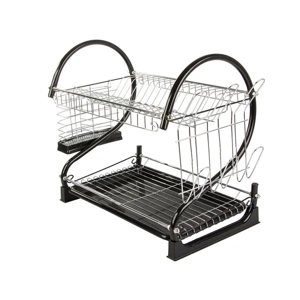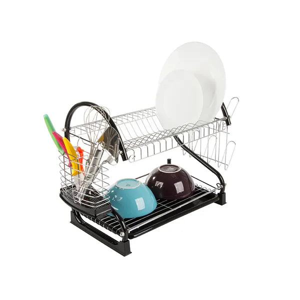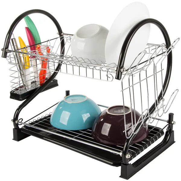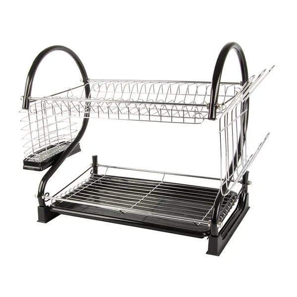 Ha kevés a pultfelület, a kétszintes edényszárító állvány igazi megmentő: egyszerre biztosít bőséges helyet a mindennapi mosogatás után felhalmozódó tányérok, tálak, poharak és evőeszközök számára, miközben elegáns fekete színe bármely konyhába illeszkedik.