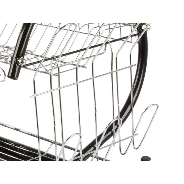 Kétszintes edényszárító állvány, fekete, 52×25×38 cm, csepegtetőtálcával