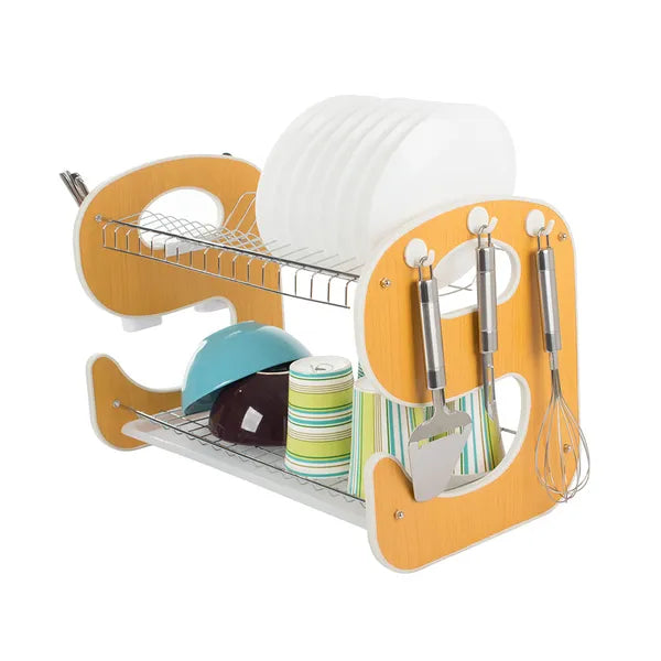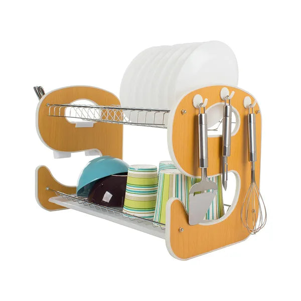 Kétszintes edényszárító csepegtetőtálcával, evőeszköztartóval
