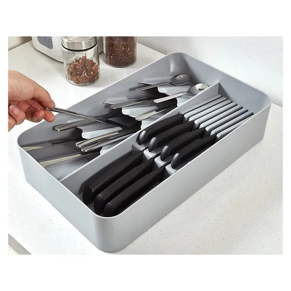 - Tágas felosztás: 9 késbefogadó vájat és 4 különálló evőeszköz-rekesz a precíz rendszerezéshez.
