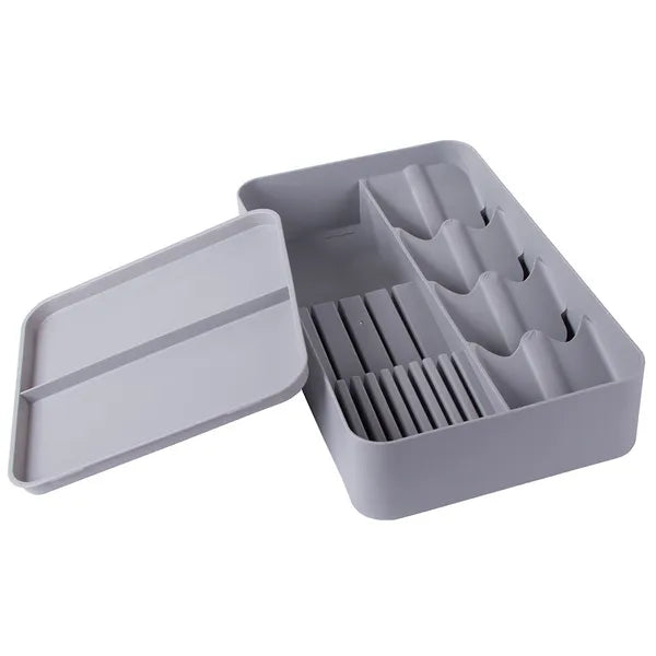 Kifejezetten a zsúfolt konyhafiókokhoz tervezett, kétszintes evőeszközrendezőnk segít, hogy minden villa, kés, kanál és kiegészítő kéznél legyen. A két szint maximálisan kihasználja a fiók mélységét, így akár 40 %-kal több tárolóhelyhez juthatsz, miközben az eszközök áttekinthetően, biztonságosan elkülönítve pihennek.