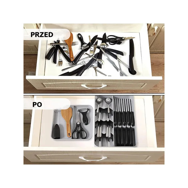 A csomag tartalma: 1 db vadonatúj, eredeti kétszintes evőeszközrendező fiókbetét.