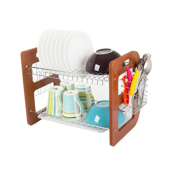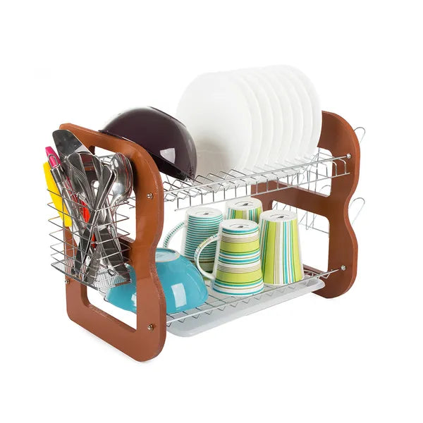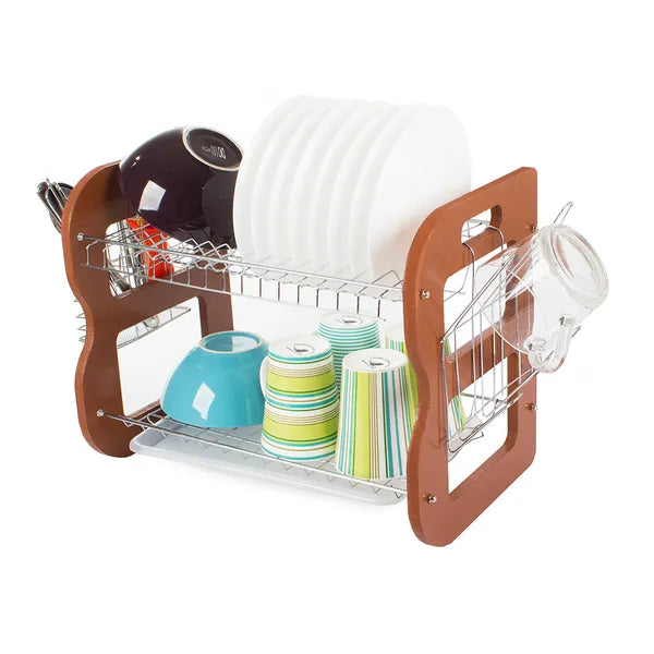 Kerüld el a vizes munkapultot, és tartsd rendezetten az edényeket ezzel a kétszintes, barna fa edényszárítóval. Masszív felépítésének és 42×26×33 cm-es méretének köszönhetően 16 tányért, valamint bögréket, tálakat, poharakat is kényelmesen elnyel.