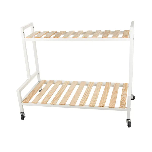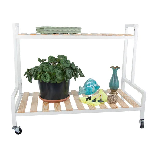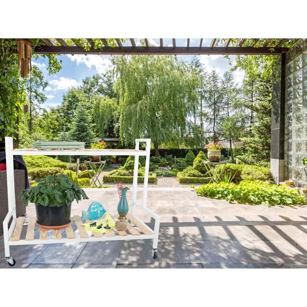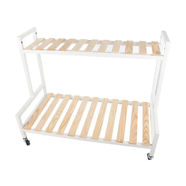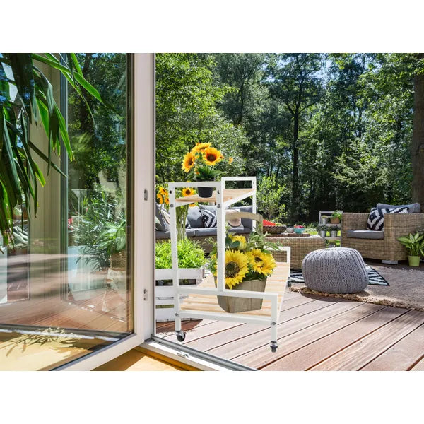 Ezzel a kétszintes, kerekeken guruló virágtartó polccal könnyedén rendezheted el cserepes növényeidet, dekorációidat vagy akár könyveidet. Letisztult fehér-natúr színvilága bármely nappaliban, erkélyen vagy teraszon harmonikusan mutat.