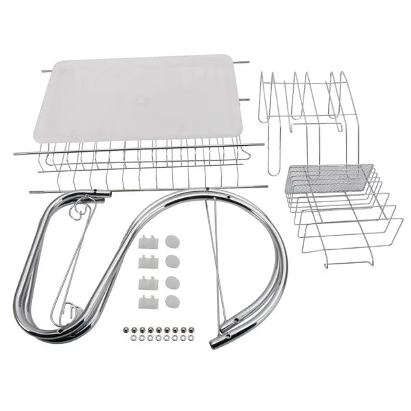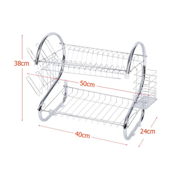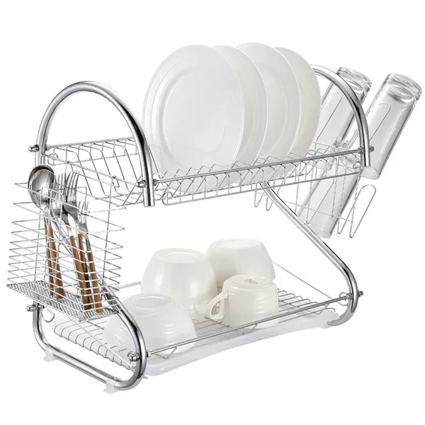 Élvezze a rendezett munkalapot a kétszintes edényszárítóval, amely egyszerre akár 12 tányért, bögréket, poharakat és evőeszközöket is biztonságosan szárít. A masszív rozsdamentes acél váz és a praktikus kivehető műanyag csepegtetőtálca megvédi a konyhapultot a vízfoltoktól, miközben helyet spórol.