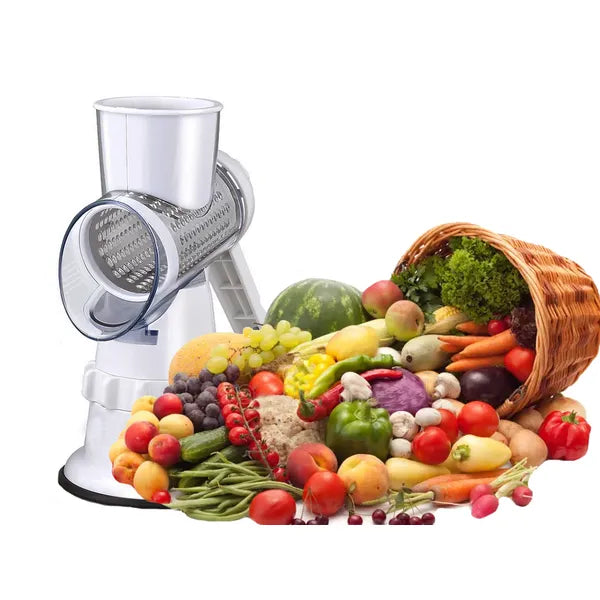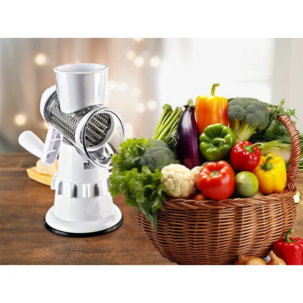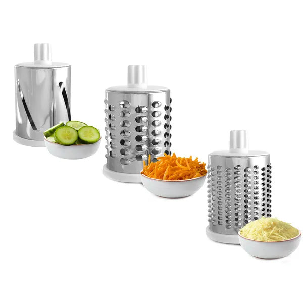 Kézi 3 az 1-ben zöldség- és sajtreszelő tapadókoronggal, 3 cserélhető dob