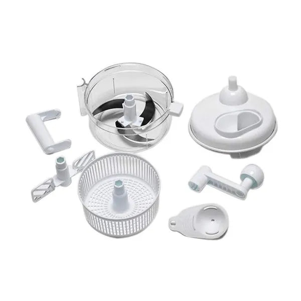 Kézi multifunkciós aprító-habverő salátacentrifugával, rozsdamentes pengékkel