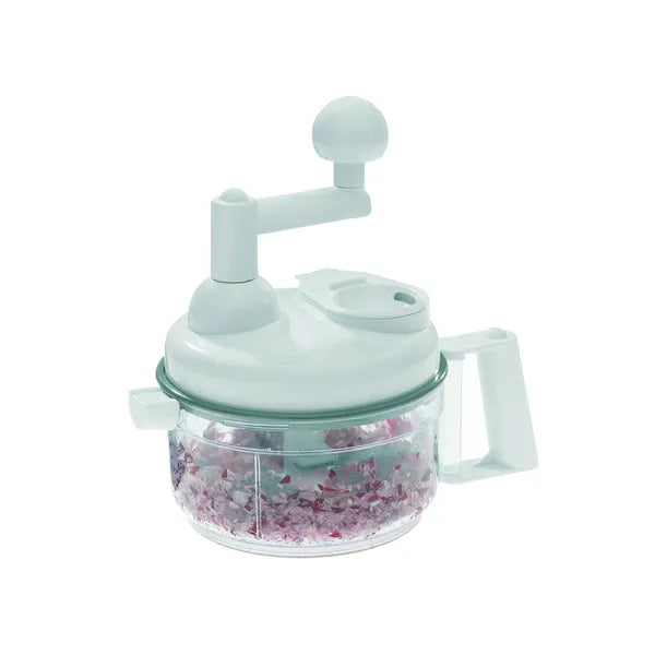 A kézi multifunkciós aprító és salátacentrifuga gyorsan elvégzi a mindennapi konyhai feladatokat áram nélkül. A rozsdamentes acél pengék pillanatok alatt felaprítják a zöldségeket, gyümölcsöket, sőt jeget is, míg a habverő feltéttel könnyedén készíthetsz tojáshabot vagy palacsintatésztát. A beépített centrifuga néhány tekeréssel leszárítja a frissen mosott salátaleveleket, így máris tálalhatod a ropogós köretet.