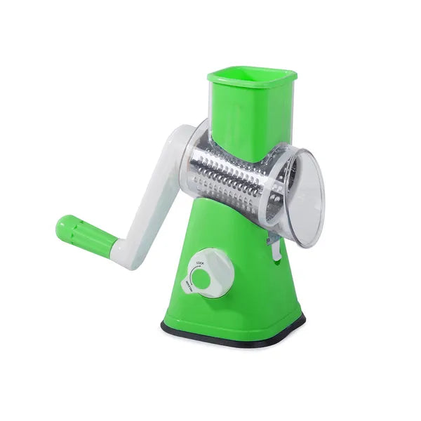Kézi zöldség- és sajtreszelő 3 az 1-ben, 3 cserélhető dob, zöld 23 cm