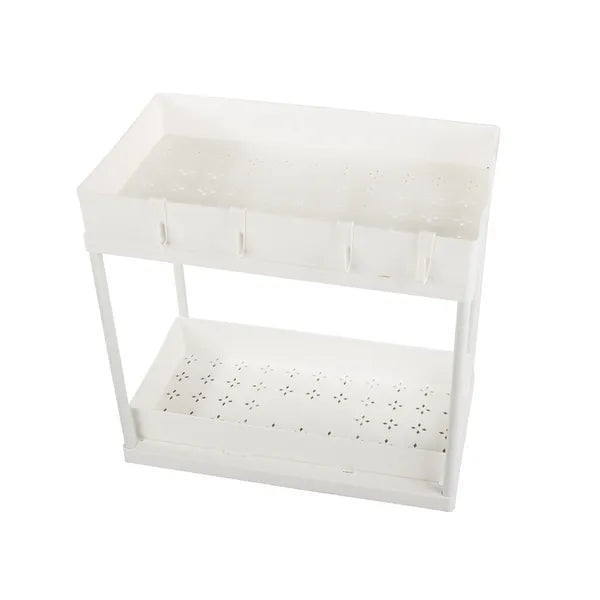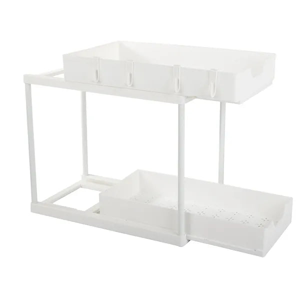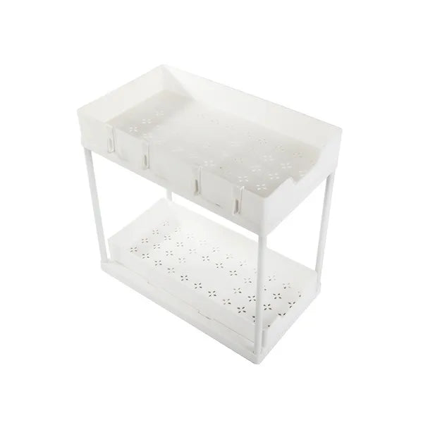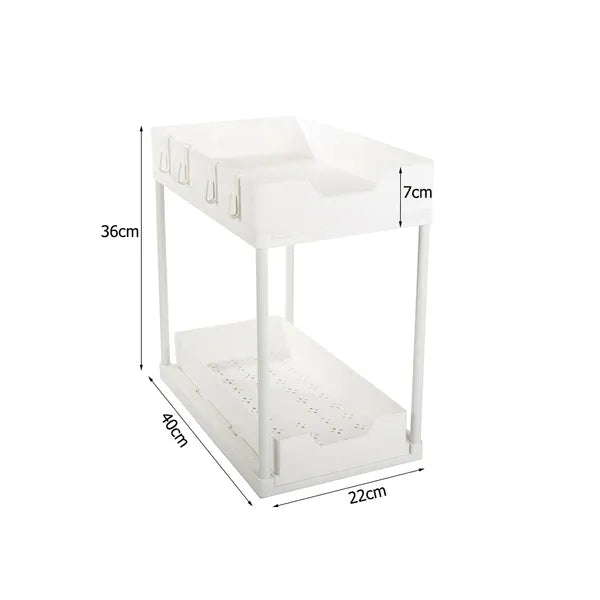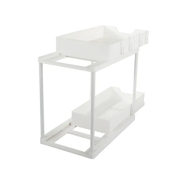 Kihúzható 2 szintes fűszertartó polc, fehér, 36×40×22 cm