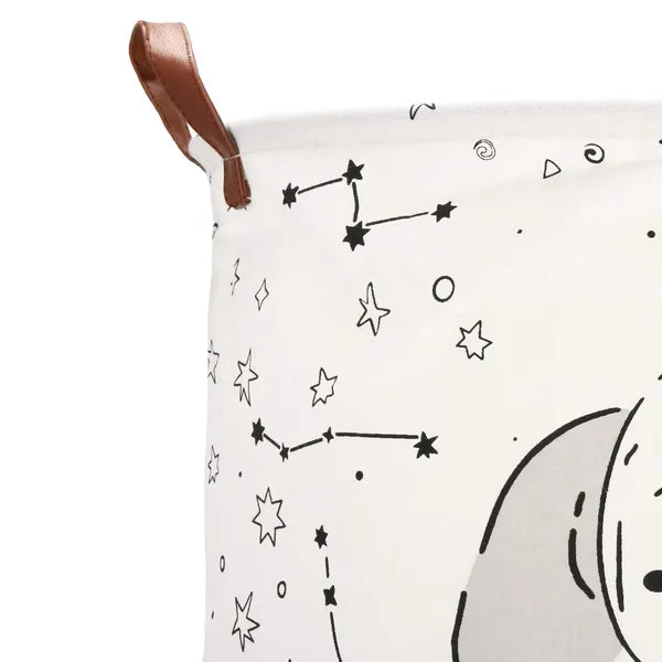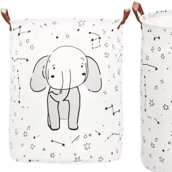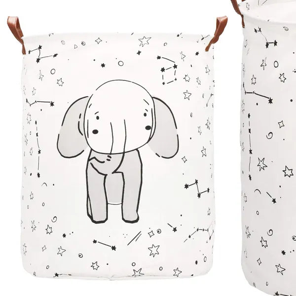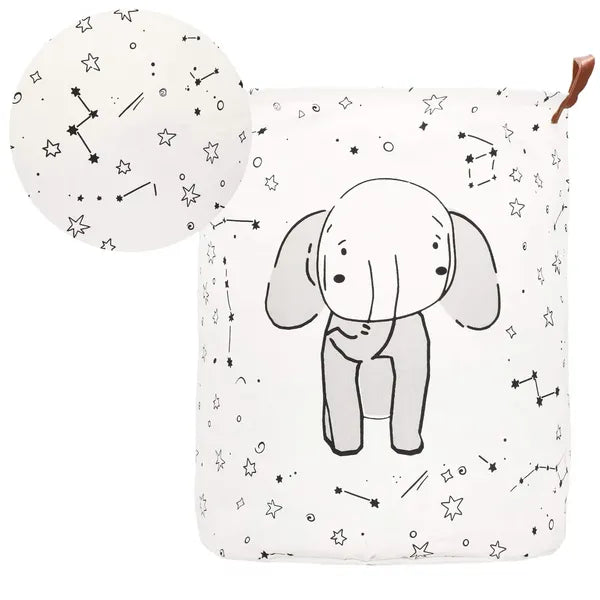 Színes, mégis visszafogott tárolási megoldás a rendetlen gyerekszoba, háló vagy fürdő számára. A krém alapszínű kosarat elefánt és csillag motívum teszi játékossá, így dekorációként is megállja a helyét.