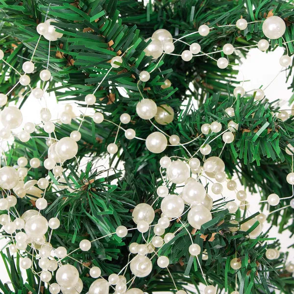 Az 5 méteres, krém színű műanyag gyöngyfüzér finom, elegáns fényt kölcsönöz minden dekorációnak.