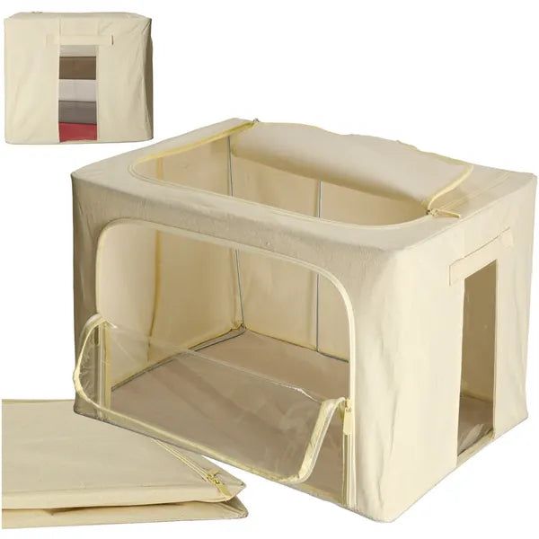 Krémszínű, 66 l-es ágynemű- és ruhatároló zsák belső vázzal