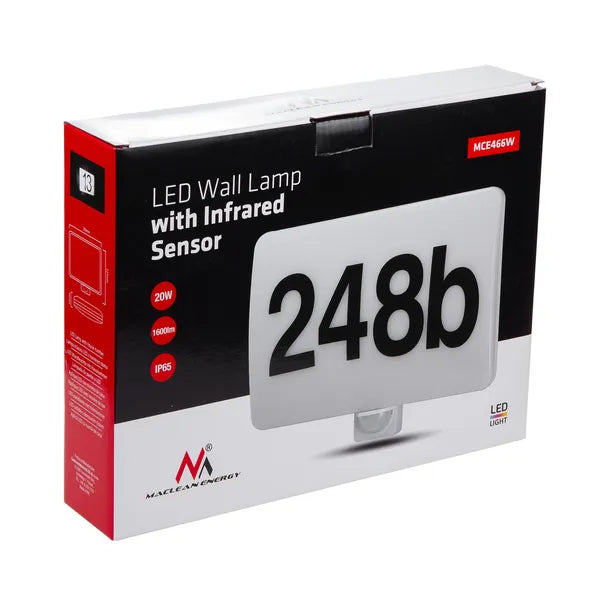 Kültéri LED házszámlámpa mozgás/alkony érzékelővel, 20W, IP65, 4000K