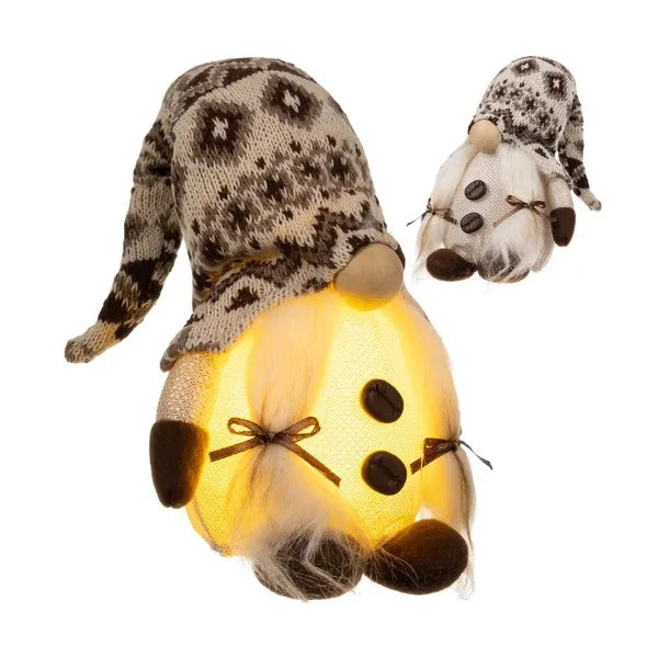 Varázsolj meghitt ünnepi fényt otthonodba ezzel a 33 cm magas, szürke szakállas álló manóval, amelynek pocakjában energiatakarékos LED világít. A termék puha kötött textilből, tartós műanyagból és stabil fakorong talpból készült, így egész évben biztonságos és mutatós dekoráció.