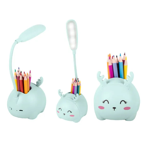 LED gyerek éjjeli lámpa USB-tölthető, telefon- és írószertartó, kék