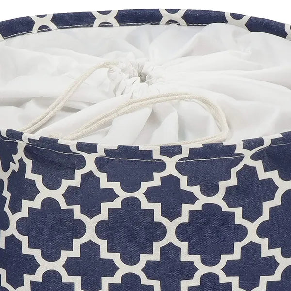 Len-pamut tárolókosár, 63 l, 50×40 cm, sötétkék/fehér