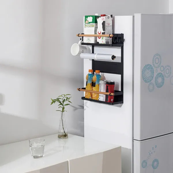 Szabadítson fel értékes munkafelületet a konyhában a Maclean MC-910 mágneses polccal! A matt fekete, két szintes tartó három erős mágnes segítségével pillanatok alatt felpattan a hűtő vagy a mosógép oldalára, fúrás és ragasztó nélkül. 12 kg teherbírásának köszönhetően biztonságosan tárolhatja a fűszereket, üvegeket, italokat vagy tisztítószereket.