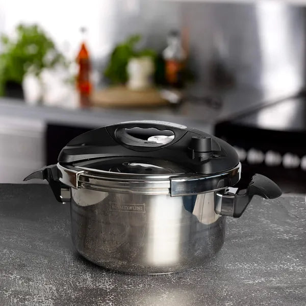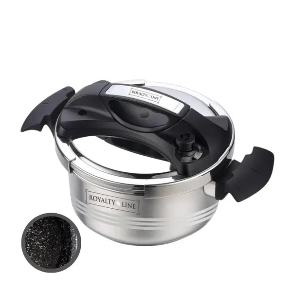 Gyorsítsd fel a főzést és spórolj energiát a Royalty Line 6 literes, márvány bevonatú rozsdamentes acél kuktával, amely akár 70 %-kal rövidebb elkészítési időt kínál, miközben megőrzi az ételek tápanyag- és ízvilágát.