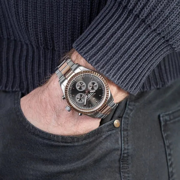 A Maserati Competizione kollekció R8853100020 modellje a sportos eleganciát és az olasz luxusautó-márka jellegzetes stílusát hozza a csuklódra. A két tónusú, rozéarany és ezüst színű, 316L rozsdamentes acél tok és szíj kiválóan ellenáll a korróziónak, míg a fekete számlap letisztult kontrasztot teremt.