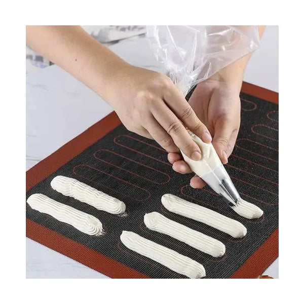 - Kétoldalas kialakítás – az egyik oldalon éclair/csíkos süteményminta segíti a pontos adagolást, a másik oldalon sima felület áll rendelkezésre univerzális használatra.