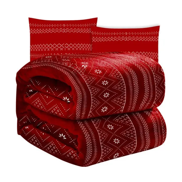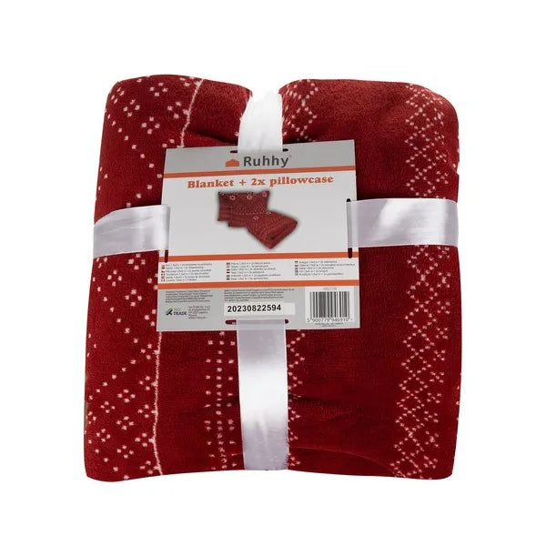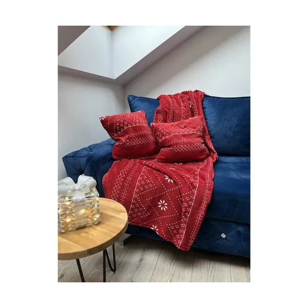 Mikroszálas karácsonyi pléd 160x200 cm + 2 db 40x40 cm huzat, piros-fehér