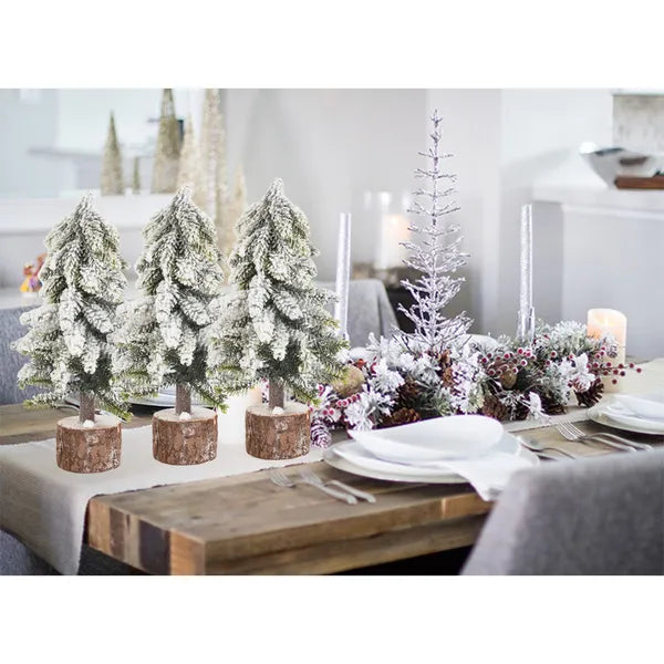 Mini havas műfenyő fa törzzsel, 26 cm, sűrű asztali dekor