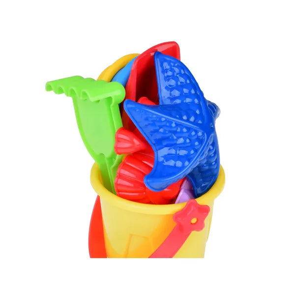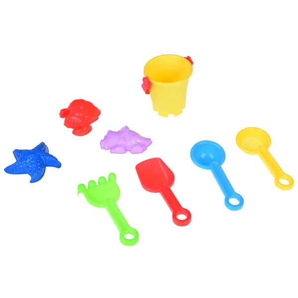 Mini színes homokozó készlet vödörrel, 7 részes zsebmértetű