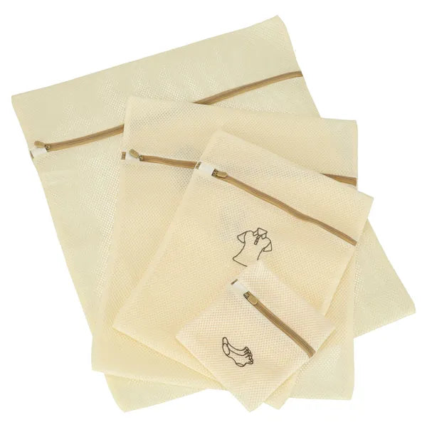 Mosóháló szett 6 db, cipzáras poliészter, több méret, bézs