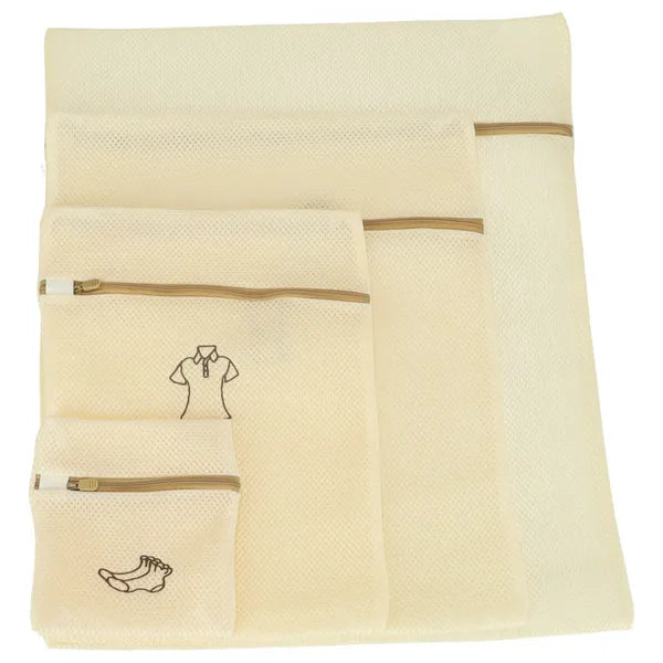 A 6 darabos mosóháló szett kíméletes megoldást kínál fehérnemű, póló, nadrág vagy kabát mosásához. A finom poliészter háló optimális víz- és mosószeráramlást biztosít, míg a megerősített cipzár megakadályozza, hogy a ruhadarabok kicsússzanak.