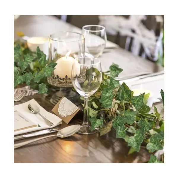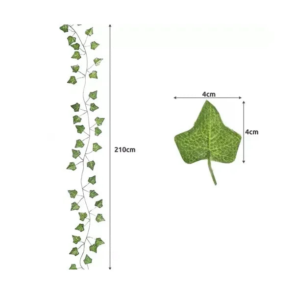 Valósághű mű borostyán girland, 3 rugalmas indával (2,1 m/db), összesen 6,3 m hosszal. Ideális beltéri és fedett kültéri díszítéshez; természetes hangulatot visz otthonodba anélkül, hogy öntözést vagy metszést igényelne. A könnyen formázható indák segítségével egyedi koszorúkat, asztaldíszeket vagy falborítást készíthetsz.