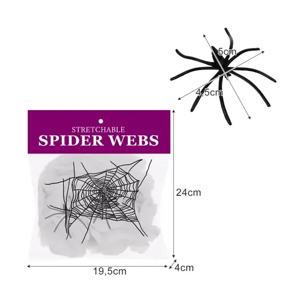 Készülj fel a legijesztőbb Halloween-bulira ezzel az élethű, fehér mű pókhálóval és a hozzá tartozó két pókkal!