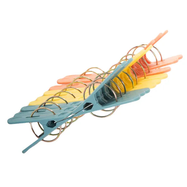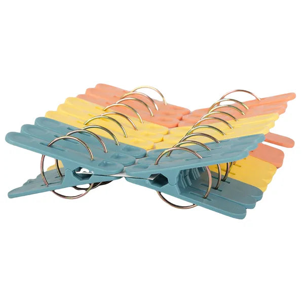 Könnyítsd meg a teregetést ezzel a 18 darabos, strapabíró műanyag ruhacsipesz készlettel! A pasztell rózsaszín, sárga és kék csipeszek erős fémrugója határozottan fogja össze a textilt, így a szél sem tudja lefújni a ruhákat a szárítóról.