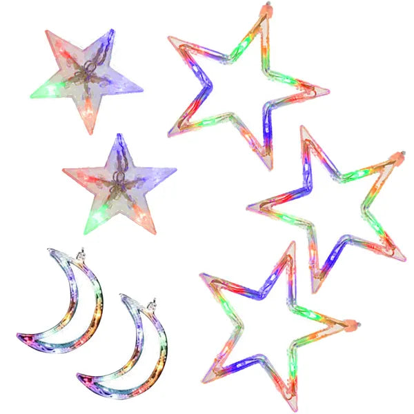 Merülj el az ünnepi fények varázsában ezzel a sokoldalú, multiszínű LED-dekorációval, amely hópelyheket, csillagokat és holdat formáló elemeivel bármely belső vagy külső térből látványos díszletet varázsol.