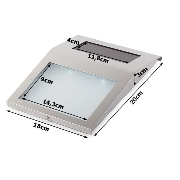 Napelemes házszámtábla rozsdamentes acél LED világítással, 18×20 cm