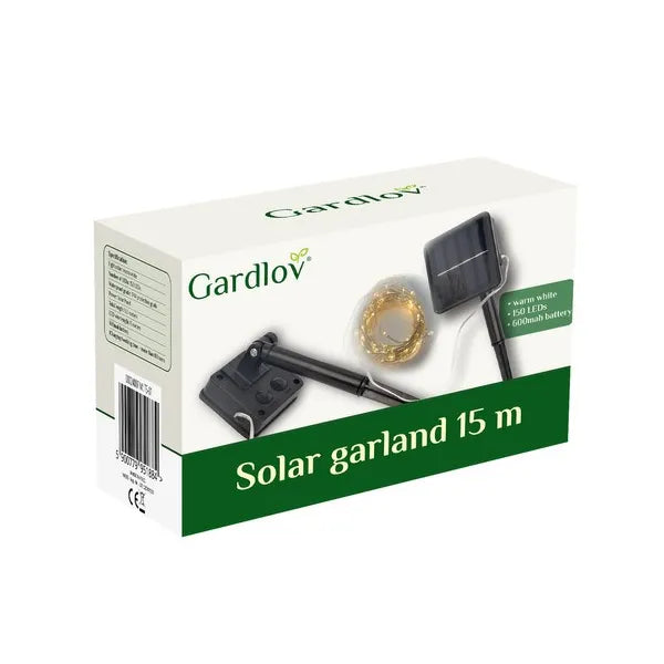 Hozzon hangulatos, meghitt fényt kertjébe vagy teraszára a 15 méter hosszú, napelemes LED fényfüzérrel. A 150 darab, 9,5 cm-enként elhelyezett meleg fehér LED egyenletes, lágy ragyogást biztosít, miközben az átlátszó kábel szinte láthatatlan marad. Az IP44 védelemnek köszönhetően egész évben ellenáll az esőnek és a fröccsenő víznek, így tökéletes választás szabadtéri dekorációhoz.