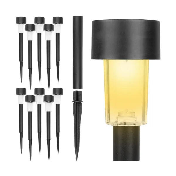 A 10 darabos napelemes LED kerti lámpa szett kábelmentes, energiatakarékos megoldást kínál a járdák, teraszok és ágyások hangulatos megvilágítására. A beépített napelem nappal tölti a cserélhető akkumulátort, majd a beépített alkonyatérzékelő sötétedéskor automatikusan felkapcsolja a meleg fehér fényt kibocsátó diódákat.