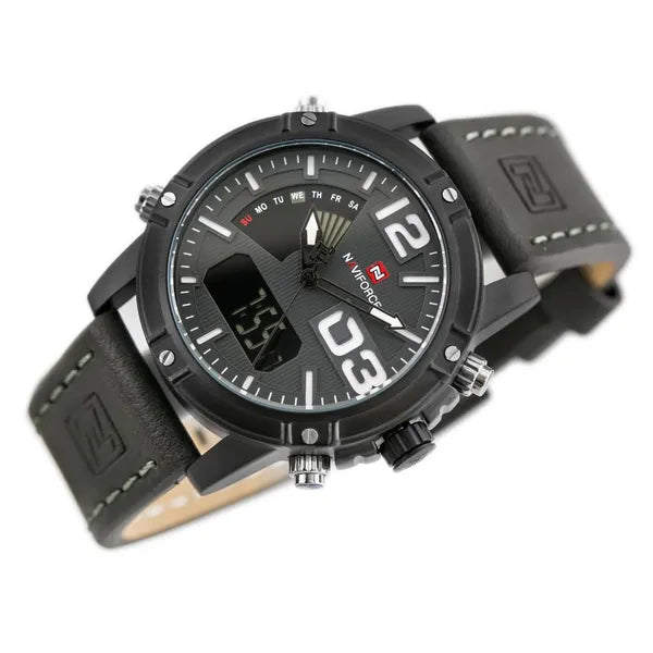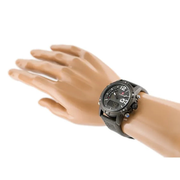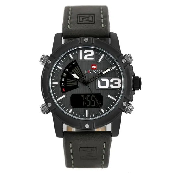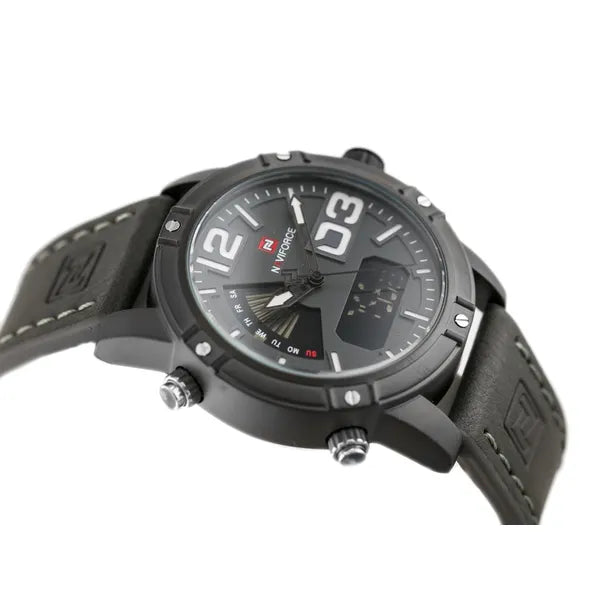 Naviforce férfi analóg-digitális kvarc karóra bőr szíj, szürke/fekete díszdoboz