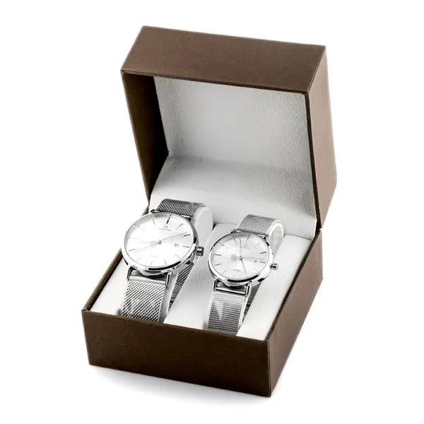 Élvezd az összehangolt megjelenést a Naviforce páros karóra szettel, amely egy férfi és egy női, egymással harmonizáló modellt tartalmaz. A megbízható SEIKO kvarc szerkezet pontos időmérést biztosít, az ezüstszínű IPS bevonat pedig ellenáll a kopásnak és antiallergén védelmet nyújt. A szett elegáns díszdobozban érkezik, így tökéletes ajándék pároknak, évfordulóra vagy esküvőre.