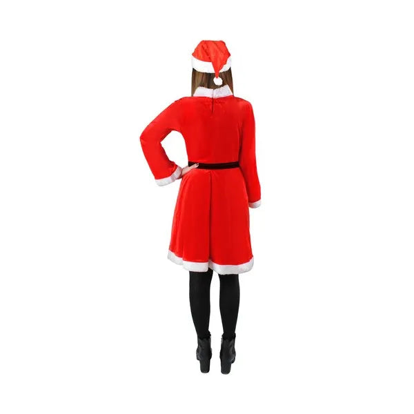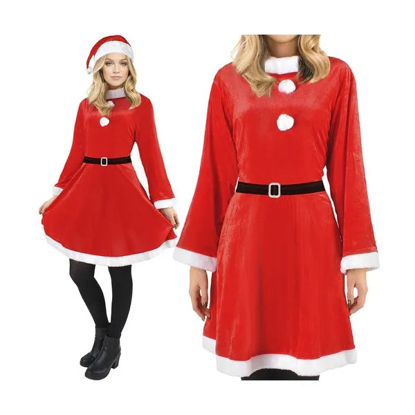 Női Mikulás jelmez velúr hatású, ruha+sapka+öv, felnőtt, egy méret