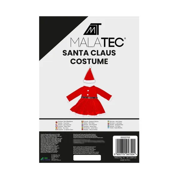 Varázsold ünnepi hangulattá a karácsonyt vagy a farsangi mulatságot ezzel a velúrhatású, piros-fehér női Mikulás jelmezzel! A szett egy rövid, alul bővülő, fehér műszőrmével szegélyezett ruhát, egy pomponos sapkát és egy állítható övet tartalmaz, amely hangsúlyozza a derekat. Tartós poliészter anyaga miatt évekig újra viselhető, még intenzív használat mellett is.