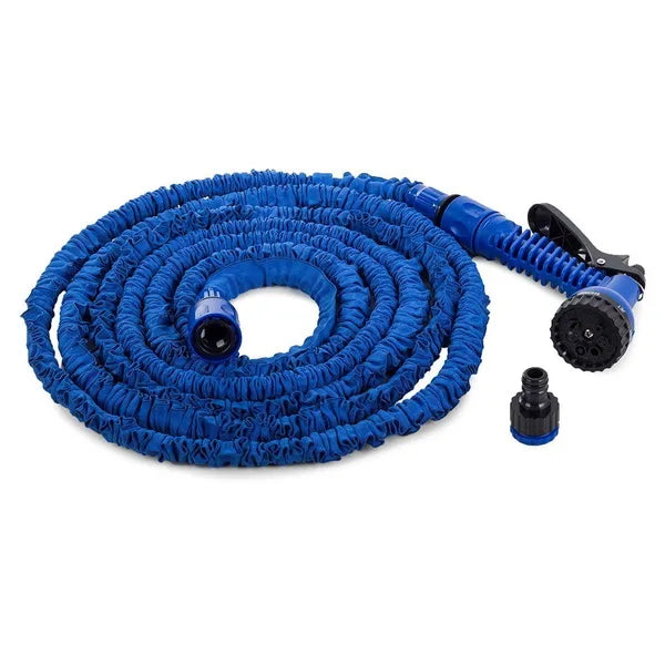 Nyújtható kerti locsolótömlő pisztollyal, 5–15 m, kék, 7 fokozat