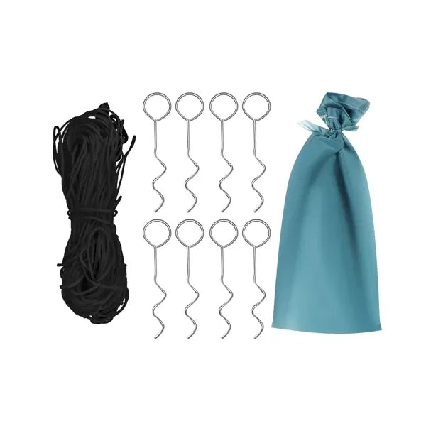 - Stabilitás – a csomagban található vasmacskák és kötélzet megbízhatóan rögzítik homokban vagy fűben.