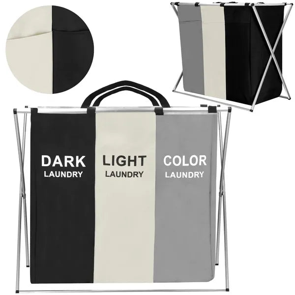 Összecsukható, 3 rekeszes szennyestartó alumínium vázzal, 146 l