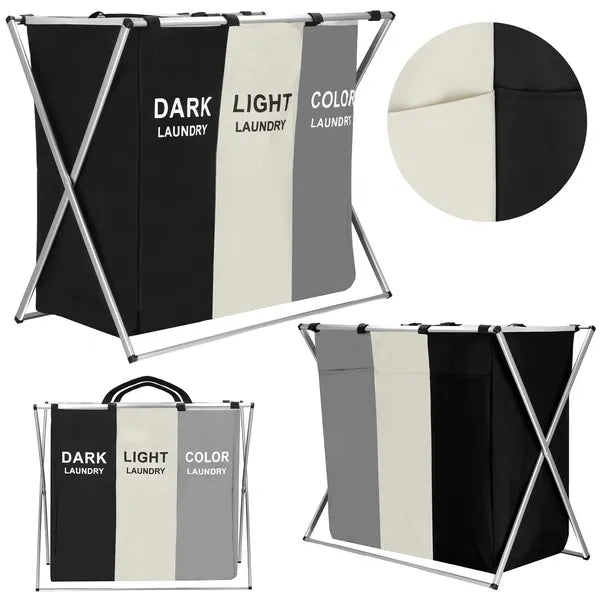 A Springos összecsukható, 3 rekeszes szennyestartóval egyszerűen rendszerezheti a sötét, világos és színes ruhákat. A 146 literes kapacitás és a könnyű alumínium váz ideális megoldást kínál családoknak vagy kis lakásoknak, ahol fontos a helytakarékosság.