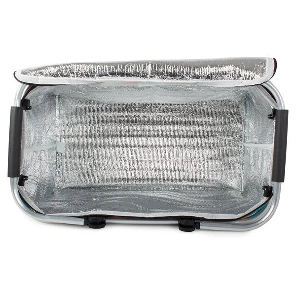 A strapabíró alumínium vázhoz párosuló, cipzáras fedél és a belső hőszigetelő fólia együtt tartja a kívánt hőmérsékletet. Összecsukva mindössze 5 cm magas, így a csomagtartóban vagy a kamrában is könnyedén elfér.