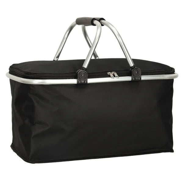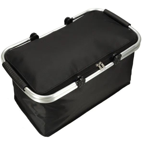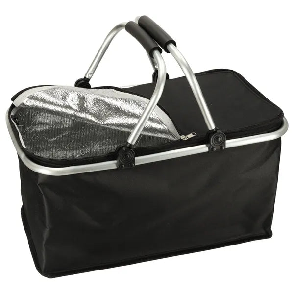 Összecsukható hőtartó piknikkosár 32 l, alumínium vázas, fekete