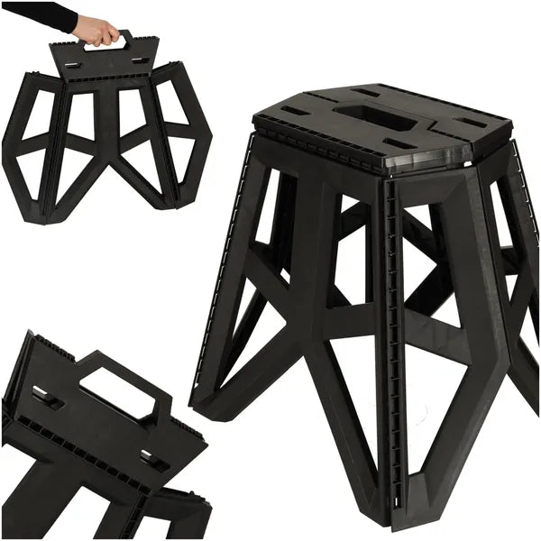 Összecsukható kemping ülőke, hordozható műanyag, 40 cm, fekete