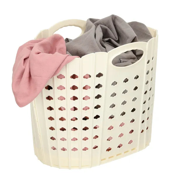 Összecsukható műanyag mosókosár krémszínű, 42×24×29 cm, fogantyúval