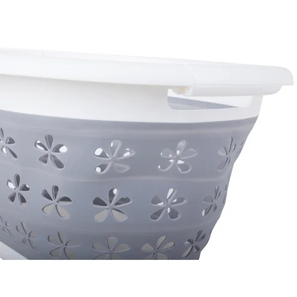 Kevés a tárolóhely a fürdőben vagy a konyhában? Ez a 25 literes, összecsukható szilikon ruháskosár pillanatok alatt laposra nyomható, így a kád mellett, a mosógép mögött vagy akár egy fiókban is elfér.